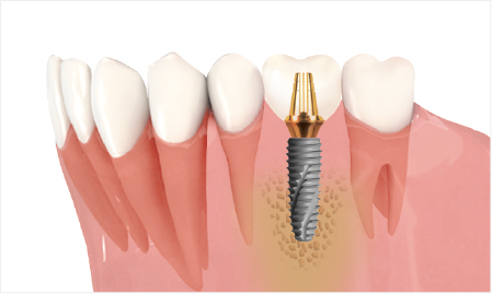 手术植入到牙糟骨后,与修复体连接,从而具有与自然牙齿相同的功能。