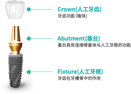 在牙齿缺损部位或拔牙的颌骨以人工牙根(Fixture)