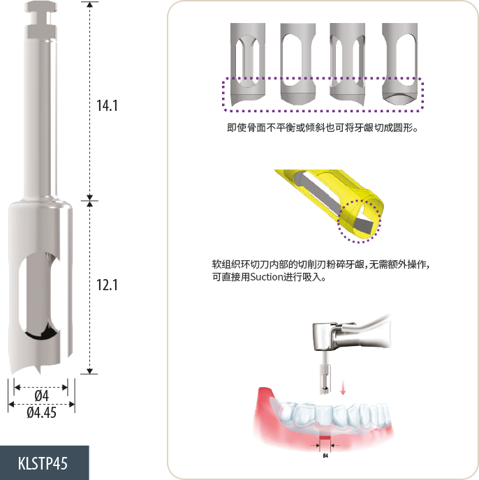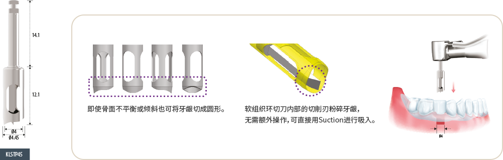 - 将要植入植体的牙龈部位切成圆形,在倾斜的骨面上也可以用(无注水,50rpm)。