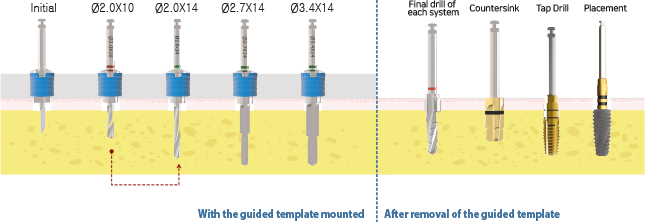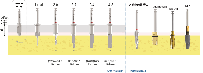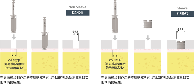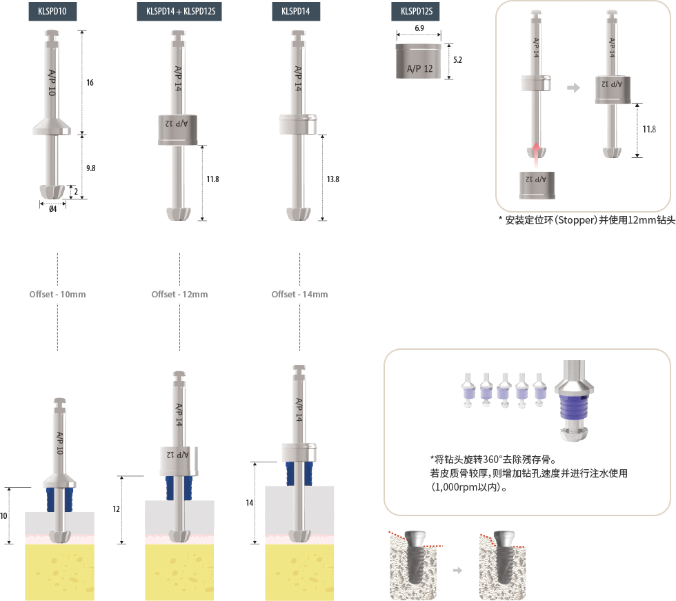 对于14mm钻,为先使用Ø2.0X10钻后再使用14mm钻,从而实现钻和套筒的精确接触。