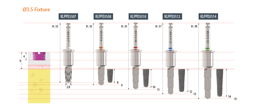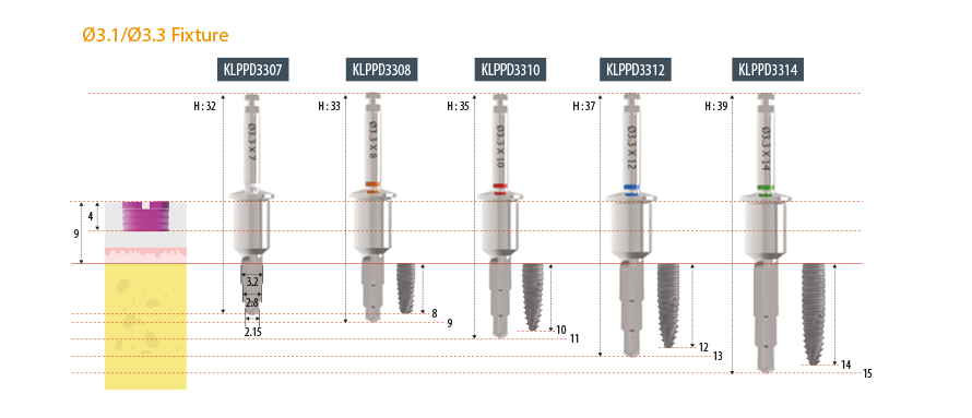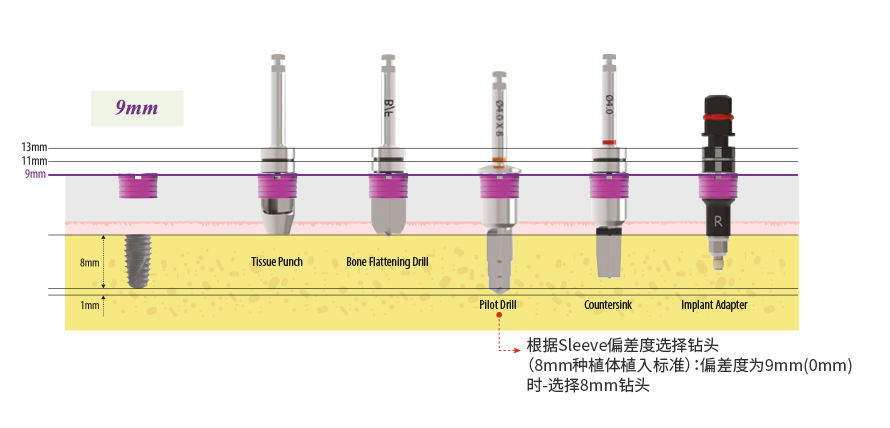 - 从植体的顶端到Sleeve上端之间的基本长度为9mm。