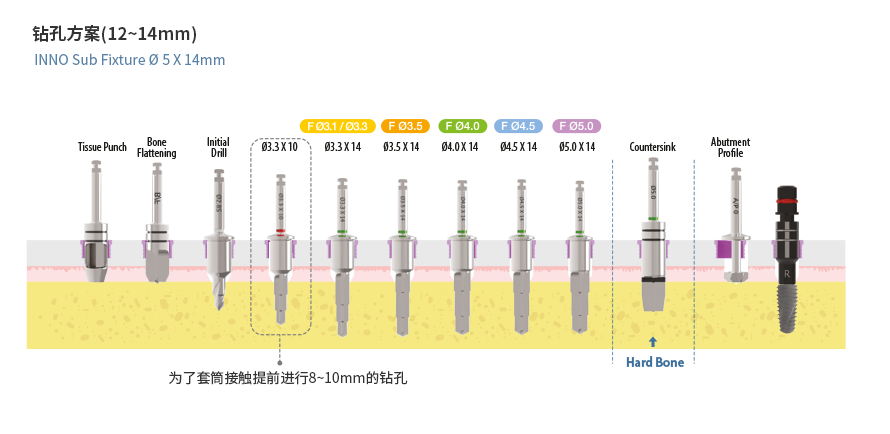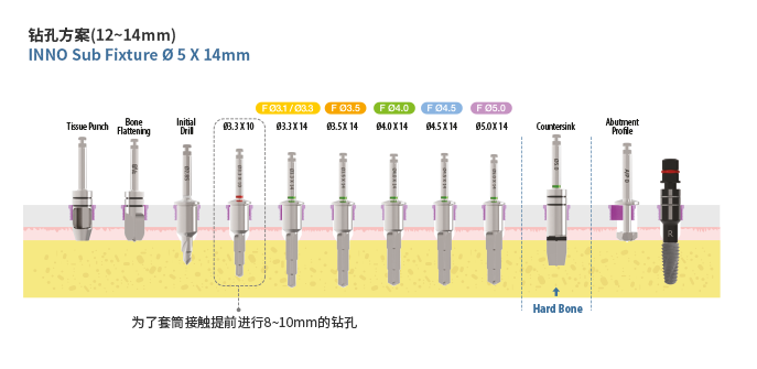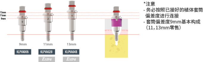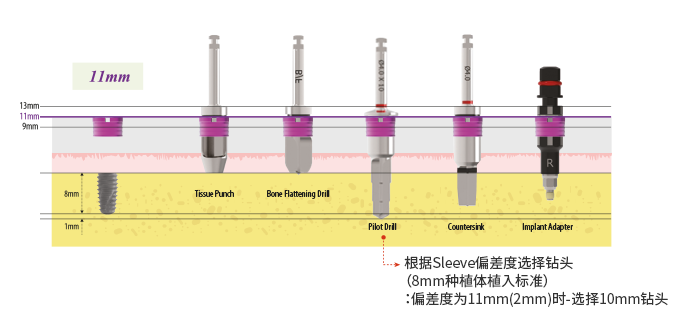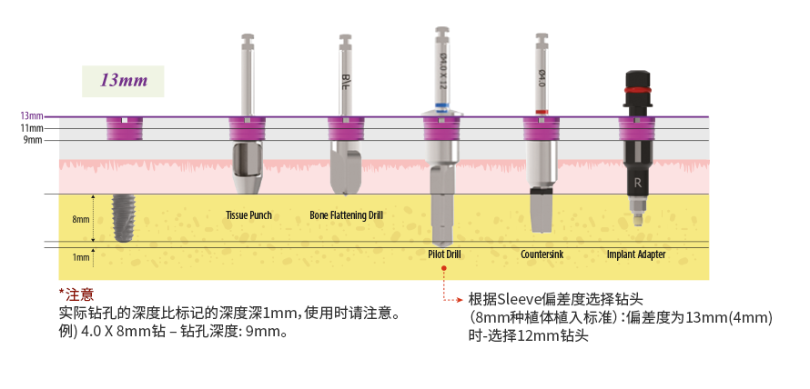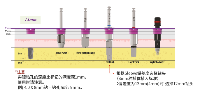 - 当患者牙龈较厚或因骨质不好而需要加深种植体植入深度时,Sleeve高度应加高2mm,4mm后使用。