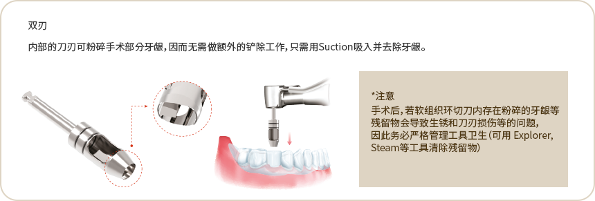 - 适用于铲除软组织(将手术部位的牙龈切成圆形)
