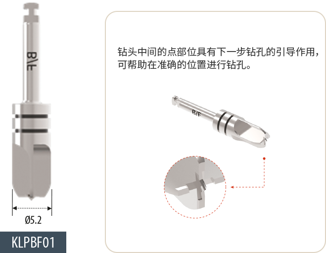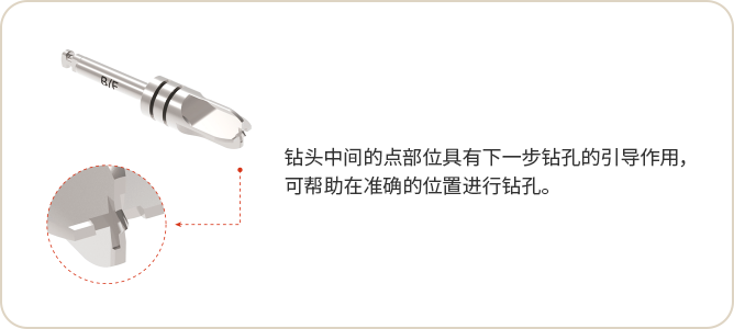- 用前一步的钻头形成窝孔之后,将下一步钻头放入之前的钻窝里完成钻头与套筒接触(A&B),然后进行钻孔。