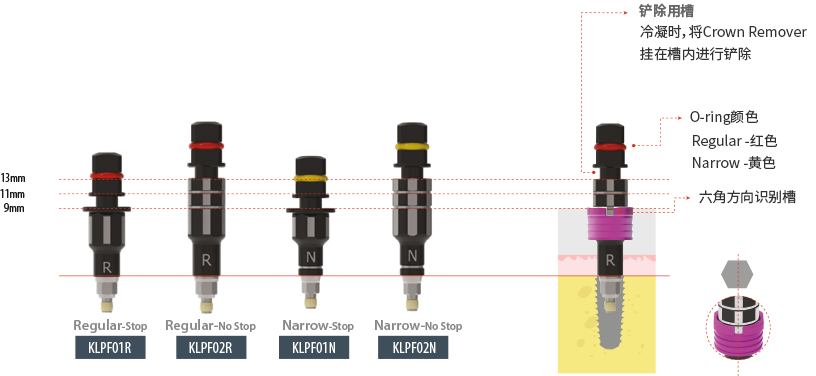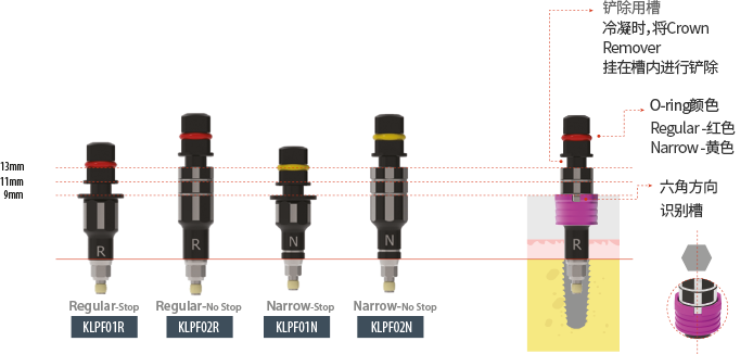 - 植入植体后,若种植体接合器因冷凝而不可去除,应将Crown Remover挂在槽内进行铲除