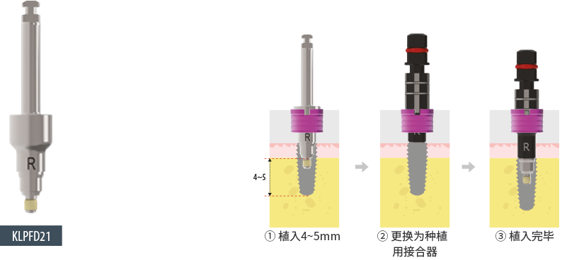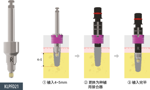 - 先植入4~5mm,然后用种植用接合器完成种植体植入