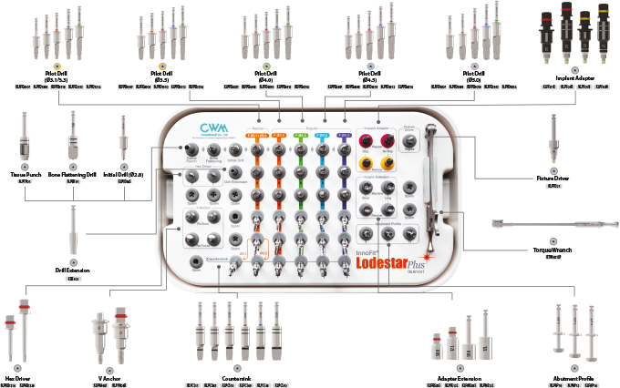- 在无牙等情况下进行初次钻孔后产生的窝孔上使用扭矩扳手固定螺丝部位,使手术导板固定不动。