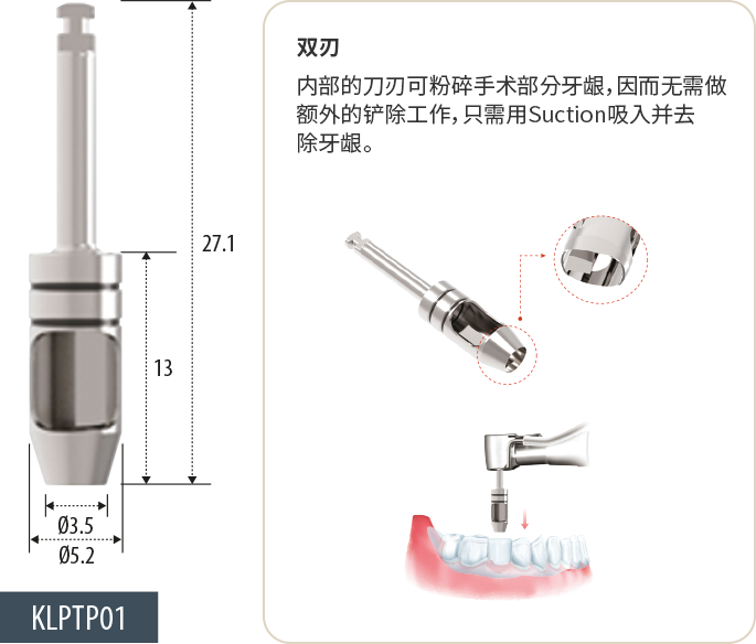 - 适用于因开口量小或与大臼齿的间距太窄而不方便用种植用接合器的情况