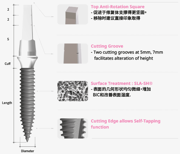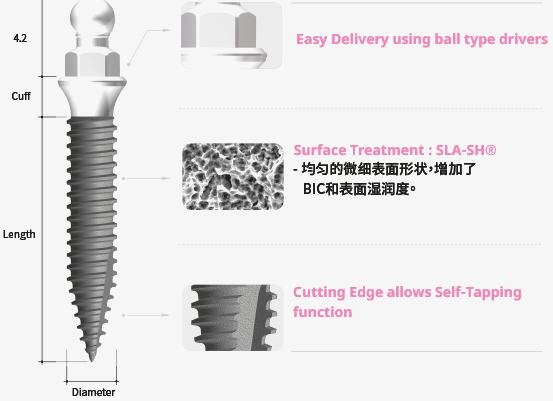 ※ 在D4骨质的情况下,通过钻进行适当的调整。 由于直径较窄, Mini Plus Implants具有自洞攻丝特性。