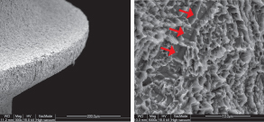 - 通过5000倍扩大的电子显微镜观察到种植体的上端部位的表面处理状态。