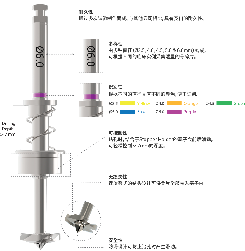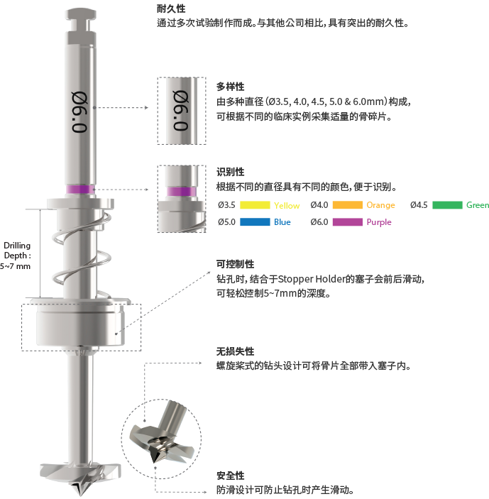Autobone Harvester Kit的核心优点是:植体植入过程中可通过Suction采集被废弃的大量自体骨片。
