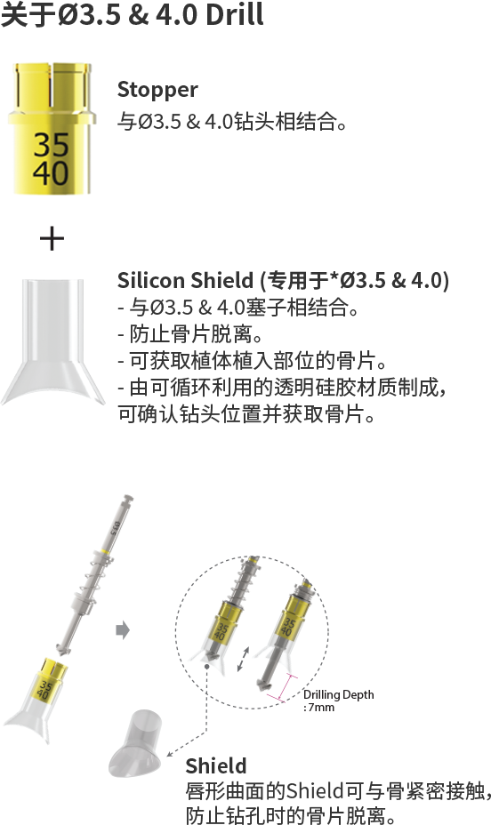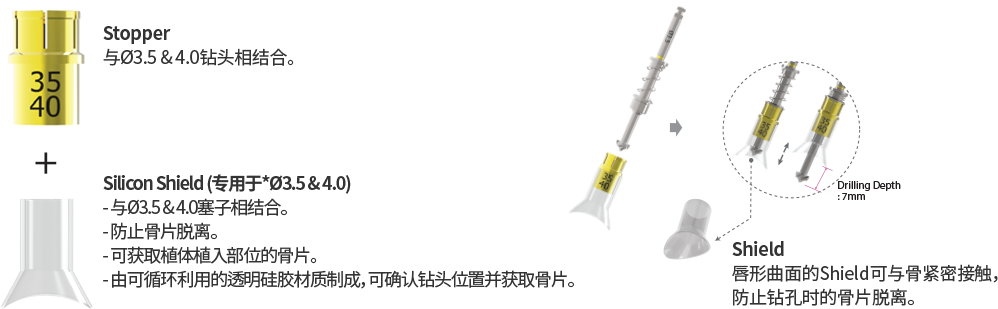 根据不同的骨高度贴紧Silicone Shield,防止骨片遗失。