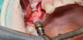 确认种植体和采集部位后,一边注水一边以300rpm的速度钻孔。