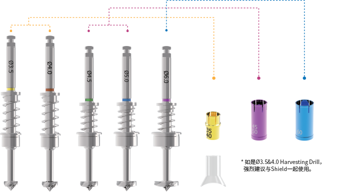 选择Ø3.5/4.0钻,与塞子连接(Shield提前与Ø3.5&4.0塞子结合)。