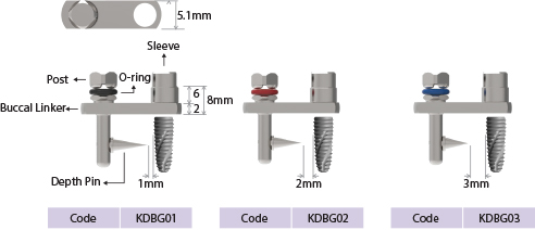 - 通过组合Linker,Pisition Guide的手术工具,根据Bone Width及种植体直径可以进行正确的手术。可用于Single,Bridge等的各种情况。