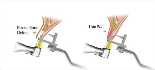 - 通过测量颊侧骨的厚度来预防骨吸收并可安全地进行手术。