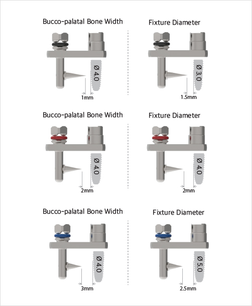 根据牙糟骨宽度和种植体直径选择1,2,3mm Buccal Guide来决定颊侧骨厚度。