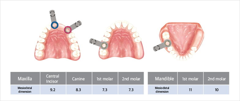 Application of 11 mm Position Guide(两个缺失的牙齿之间近远中距离至少为18mm)