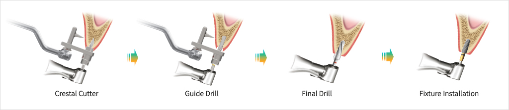 - 用Crestal Cutter形成基本的孔,然后,根据种植体直径选择钻孔顺序。