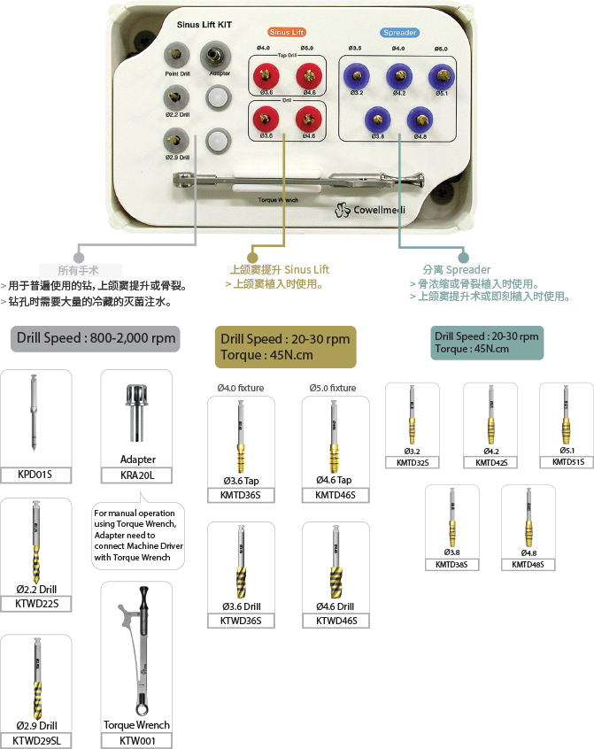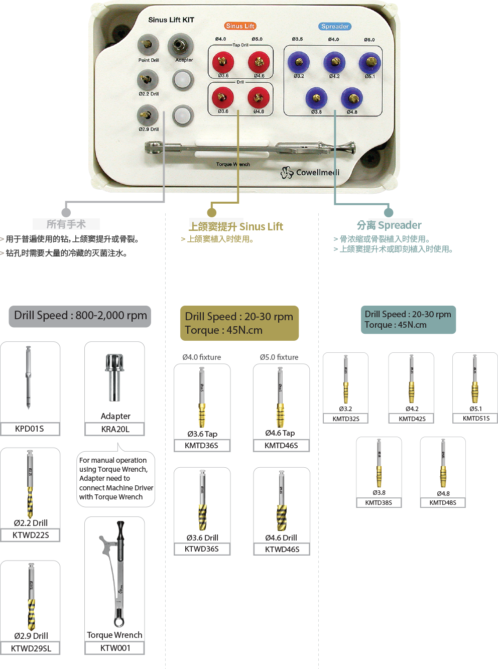 - Sinus Lift Kit是世界最具创新性的工具包,用于上颌窦提升、骨裂和骨浓缩。