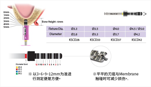 - 在剩余骨的高度低于3.5以下的情况下,请注意进行钻孔