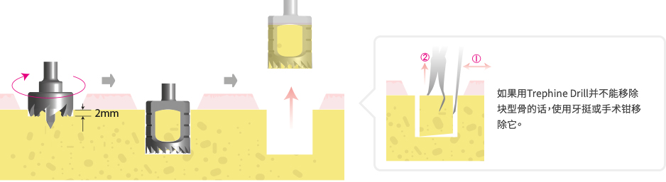 - 是一种包含钻的方便使用的工具,其用于收集块形状骨和自体骨中去除失败的种植体,还用于植入种植体之前去除骨碎片。