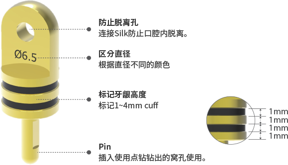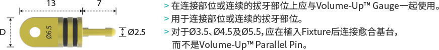 - 连续的拔牙部位或连接部位应与Volume-Up™ Parallel Pin一起使用。