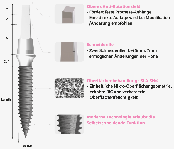 ※ Bei D4 Knochenqualität müssen angemessene Anpassungen bei der Bohrung vorgenommen werden.