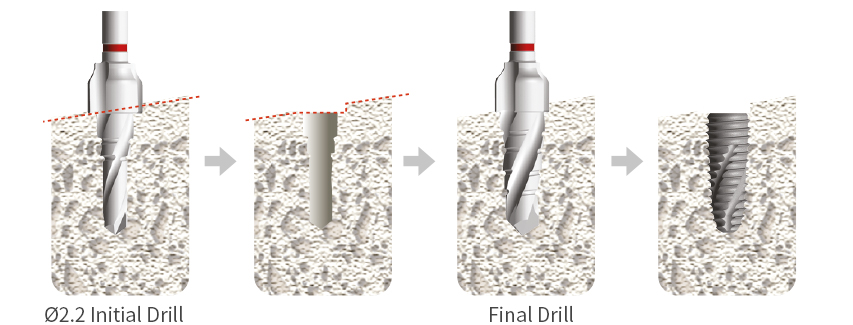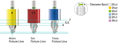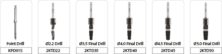 - Ø5.0 fixture: a series of point drill, Ø2.2 Initial drill, Ø4.0 final drill and Ø5.0 final drill