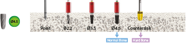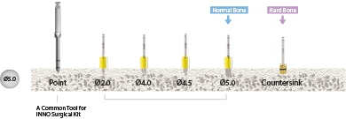- Ein einfacheres Kit für Implantat-Operationen, das für alle Implantatlängen mit Bohrern und Stoppern angewandt werden kann