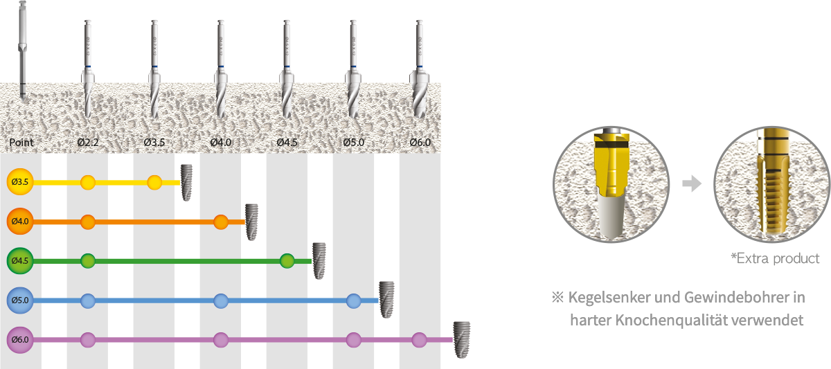 ※ Kegelsenker und Gewindebohrer in harter Knochenqualität verwendet
