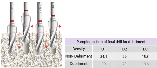 - In dichtem Knochen verringert die Reinigungsbewegung den hohen Drehmoment.