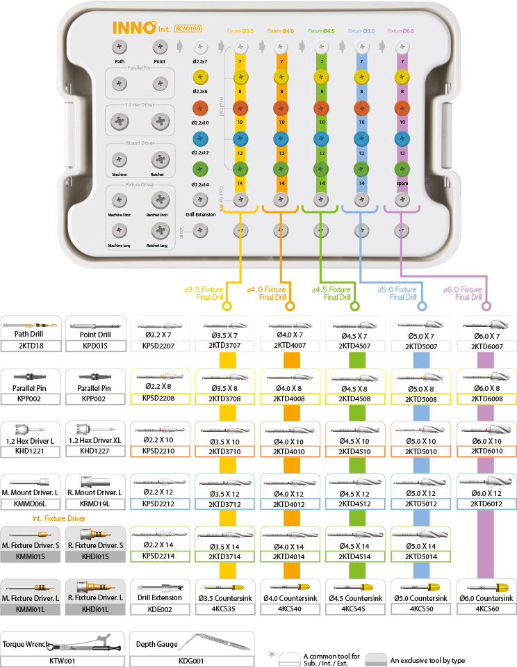 - Sub. Implant system (Ø3.5, Ø4.0, Ø4.5, Ø5.0, Ø6.0)