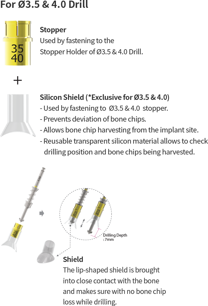 • Select Ø3.5/4.0 Drill and insert the Stopper into the selected Drill. And put the Shield on the Ø3.5&4.0 Stopper.