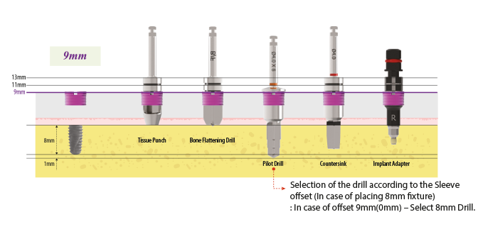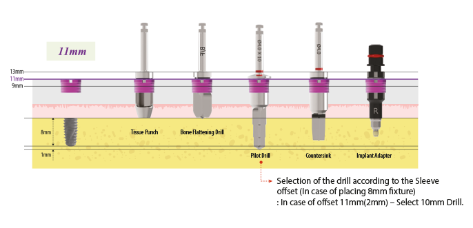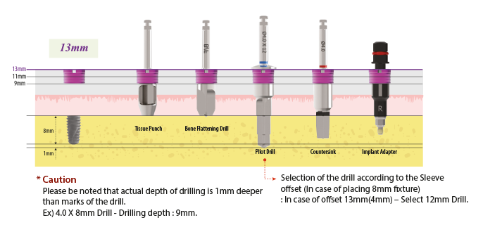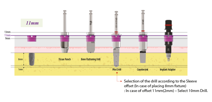 - In case that gingival is thick or fixture needs to be placed deeper due to low bone density, use the Sleeve 2 or 4mm upright to the top.