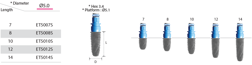 Ø5.0 fixture : a series of the Point Drill, Initial Drill, Ø4.0 Final Drill and Ø5.0 Final Drill.