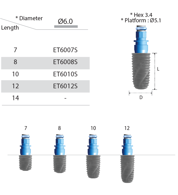 ※ The Countersink and Tap Drill are used in hard bone quality.