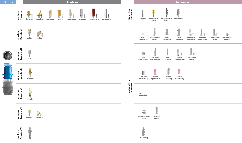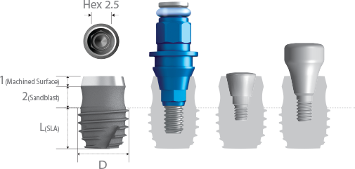- Internal hex connection (Taper 11°/ Hex 2.5).