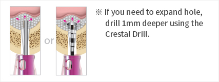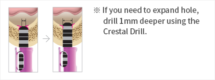 - Drilling 1~2mm more deeply than steps of Crestal Drill.