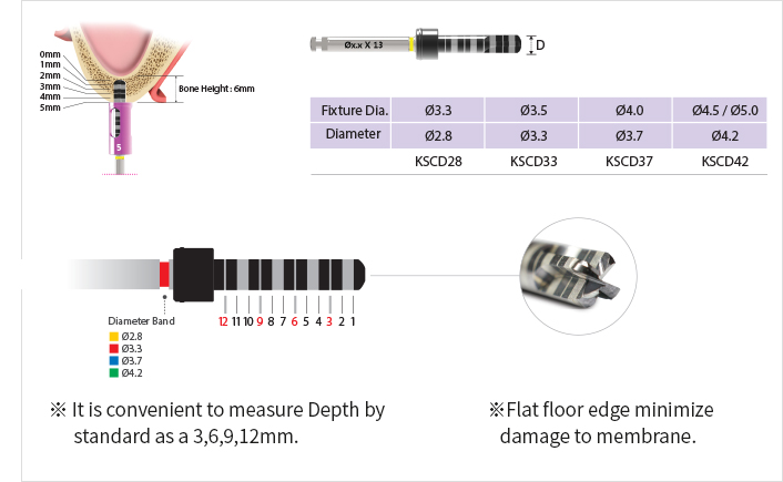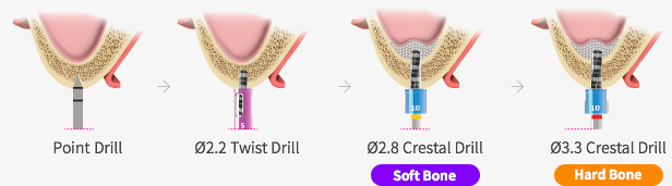 - ※ Use a drill that is one step shorter than the implant (Ex. 10mm implant, 8 ~ 9mm Drill).