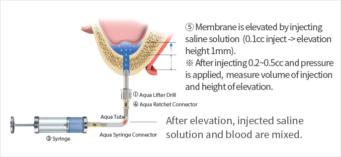 - ③ Inject saline solution equal to the amount of bone graft