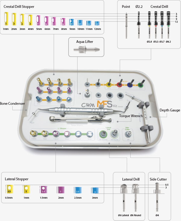 - A comprehensive kit to approach direct & indirect maxillary sinus lift simply.