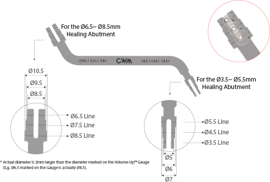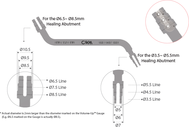 Set the Volume-up™ Gauge on the implant site according to the diameter line marked on the Volume-up™ Gauge.