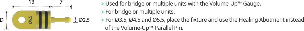 The Volume-up™ Guide System helps place implant in the right position according to 2 abovementioned clinical factors and helps select right dimension of the Healing Abutment to be used as a scaffold while gingival forming.