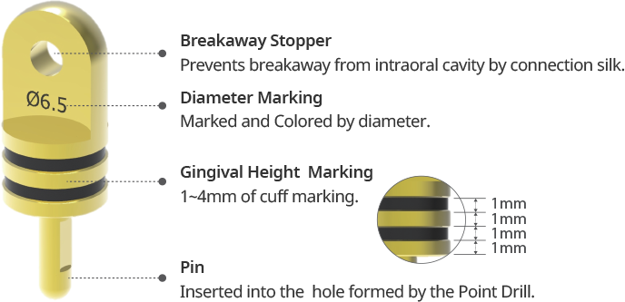 - Devised for preventing food penetration and forming natural cervical area by restoring contracted buccal alveolar bone & gingiva to the original shape and width.