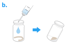 Inject distilled water into vial II with lyophilized