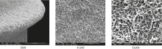 A. SLA-SH® Surface magnified X300, 1,000 and 3,000