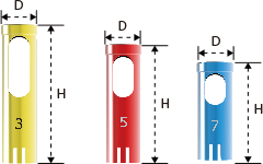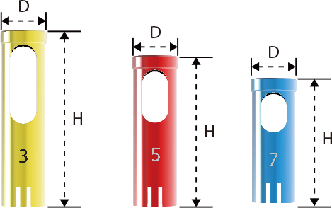 - Amarillo: 3mm, Rojo 5mm y Azul: 7mm.