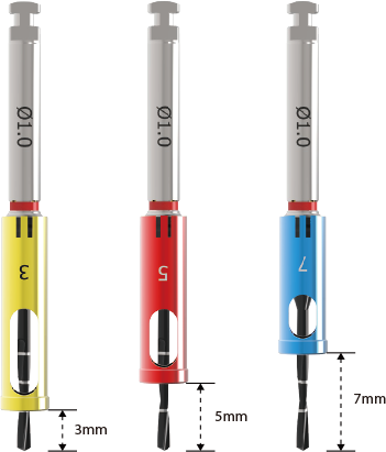 - Marcar con láser en 3,5 y 7mm de largo desde la punta del taladro i la longitud se puede Controlar utilizando los Drill Stoppers.
