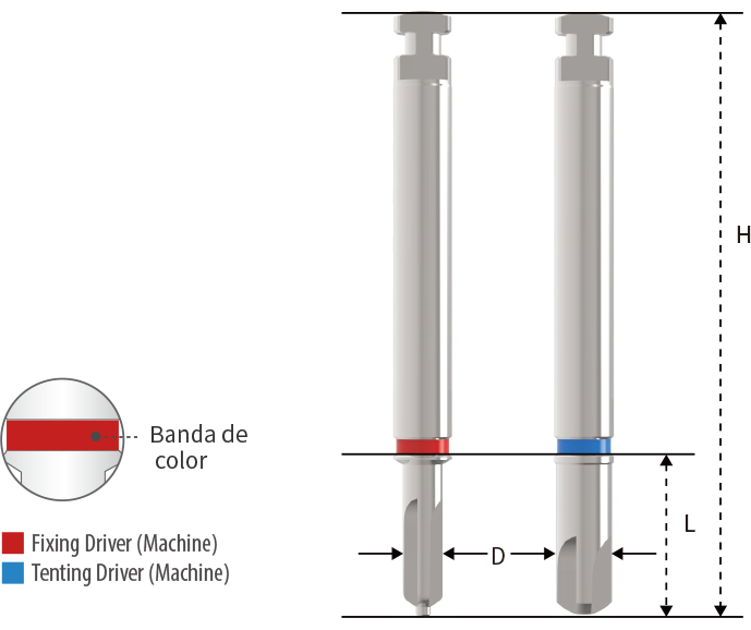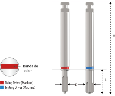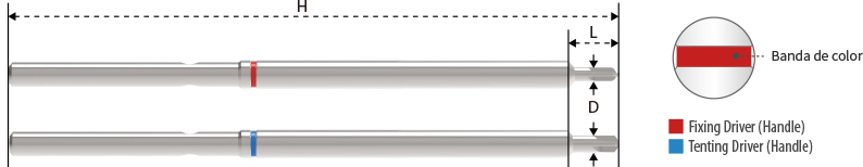 - Franja de color para distinguir (Rojo: Fixing Screw Driver, Azul: Tenting Screw Driver).
